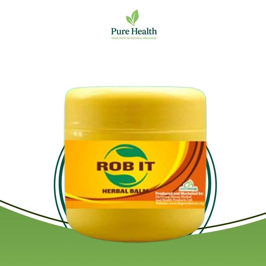 De Green House ‘ROB IT’ Herbal Balm: Harnessing Nature’s Power to Heal and Soothe. Our all-natural formula provides rapid relief from skin irritations, cold symptoms, migraine headaches, muscle pains, and bone and tissue afflictions, while nourishing your skin for optimal health.